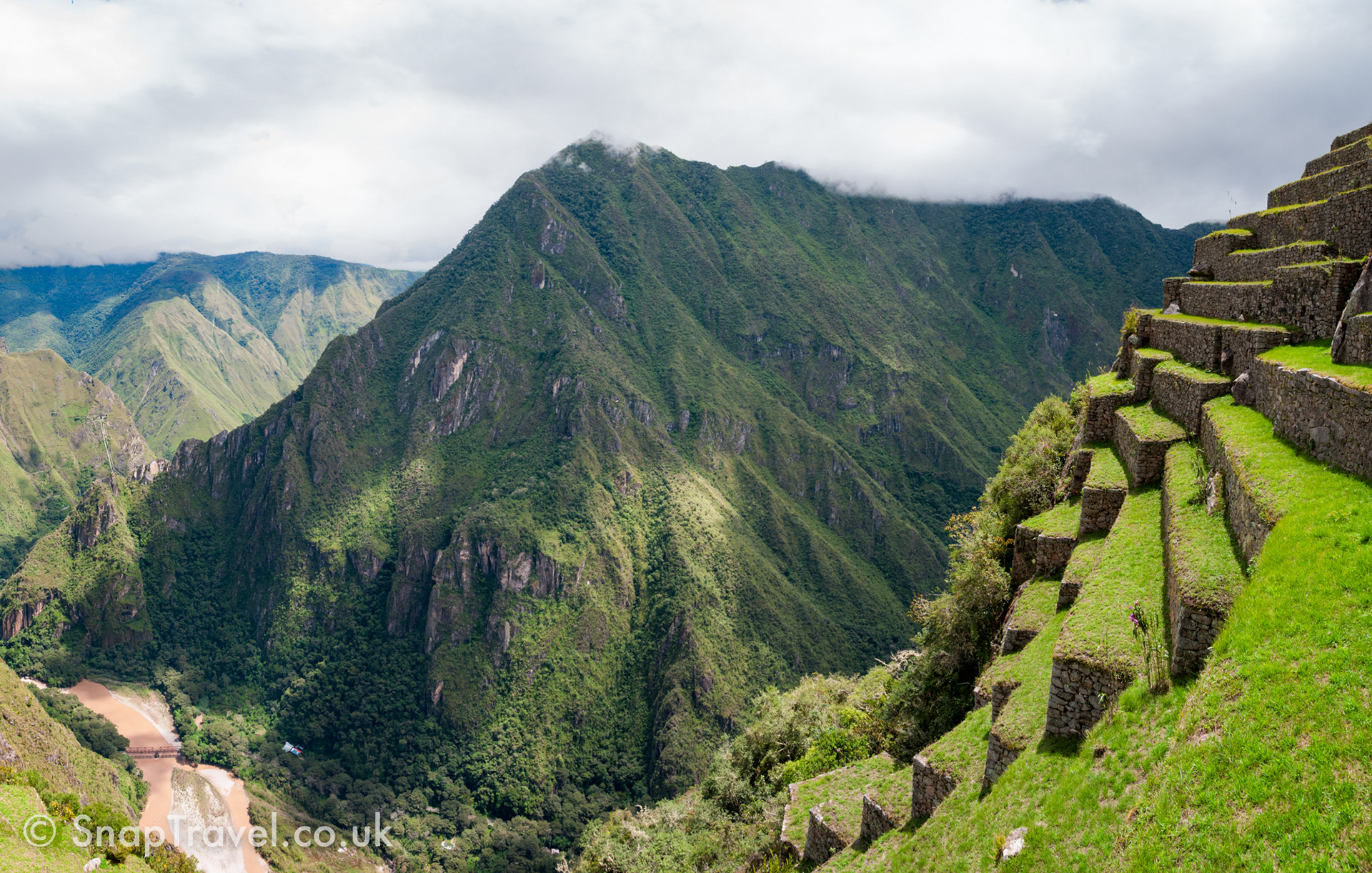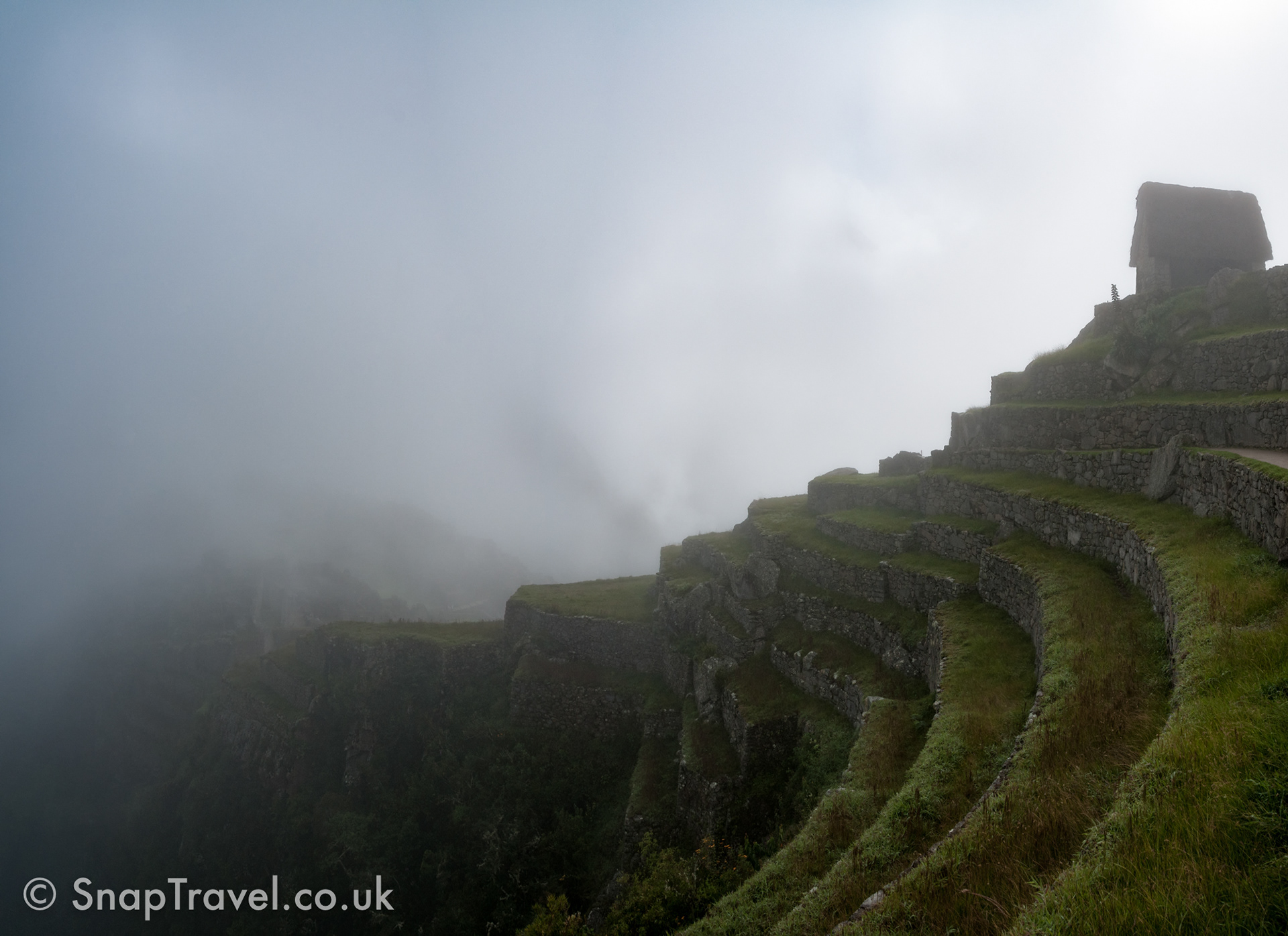 This morning fog seemed stubborn and refused to budge, but we tried to make the most of it, and spent the first half of the day wandering around the murky city taking photos. The ancient ruins had an eerie yet beautiful quality shrouded in low hanging clouds, but it was frustrating to have the majority of the city hidden from view. Fortunately, as the sun climbed to its zenith, it burnt off the morning mist leaving a warm and bright afternoon. As the fog cleared, I got my first clear view of the agricultural terraces.