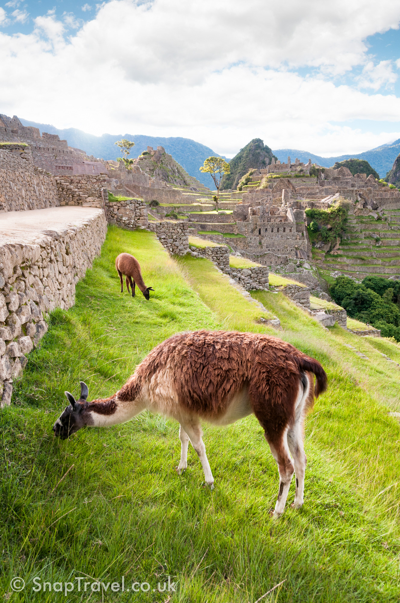 🔺Llamas grazing on the terraces. They roam freely among the ruins.