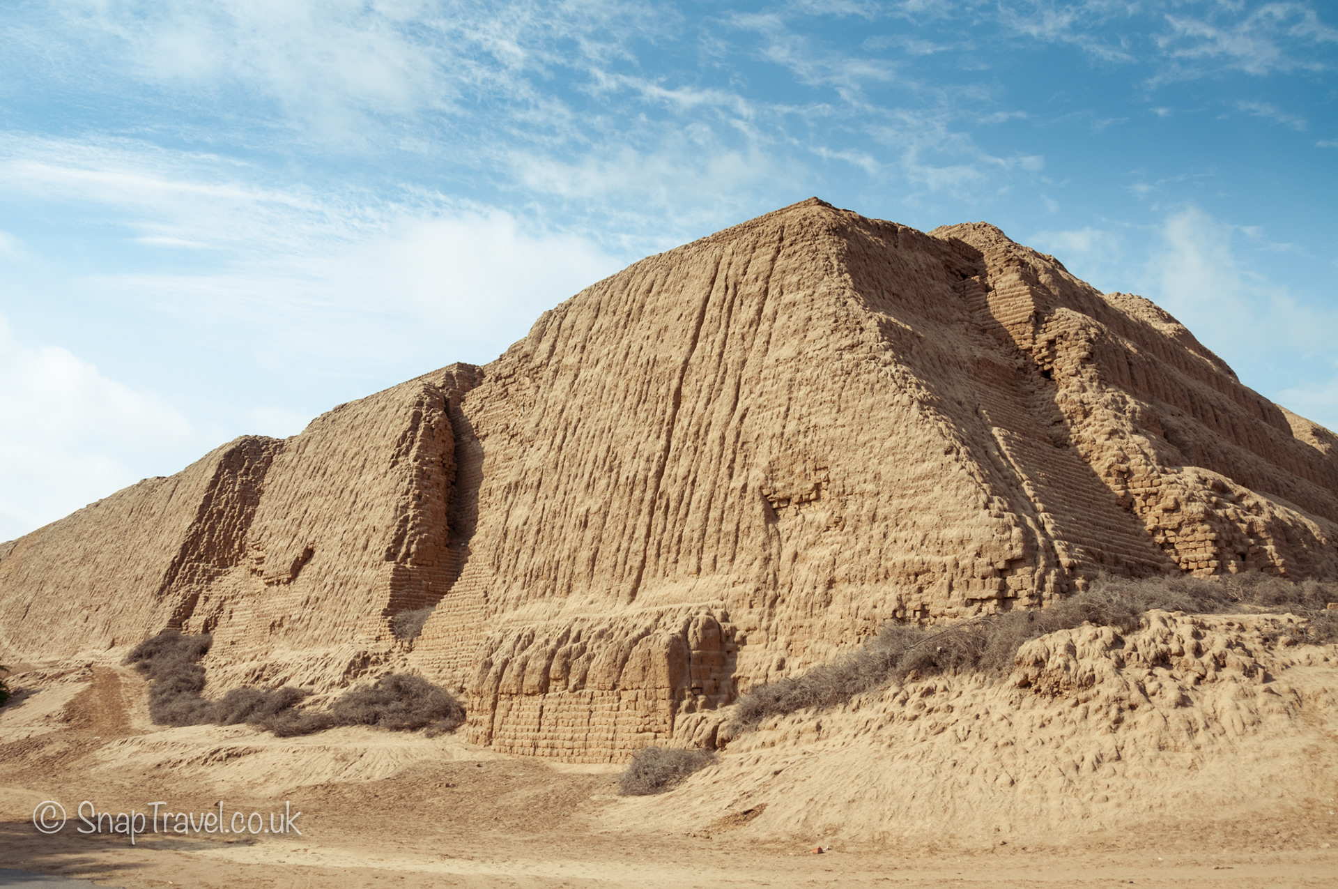 Both temples have suffered at the hands of looters over the years. The Sun Temple in particular, which contained burials with many gold artefacts, was badly damaged in the 17th century, when colonists rerouted the river Moche to undermine it. Sadly, about two-thirds of the building were completely destroyed. If you bear this in mind when viewing the temple, you realise what a truly huge structure it must once have been.