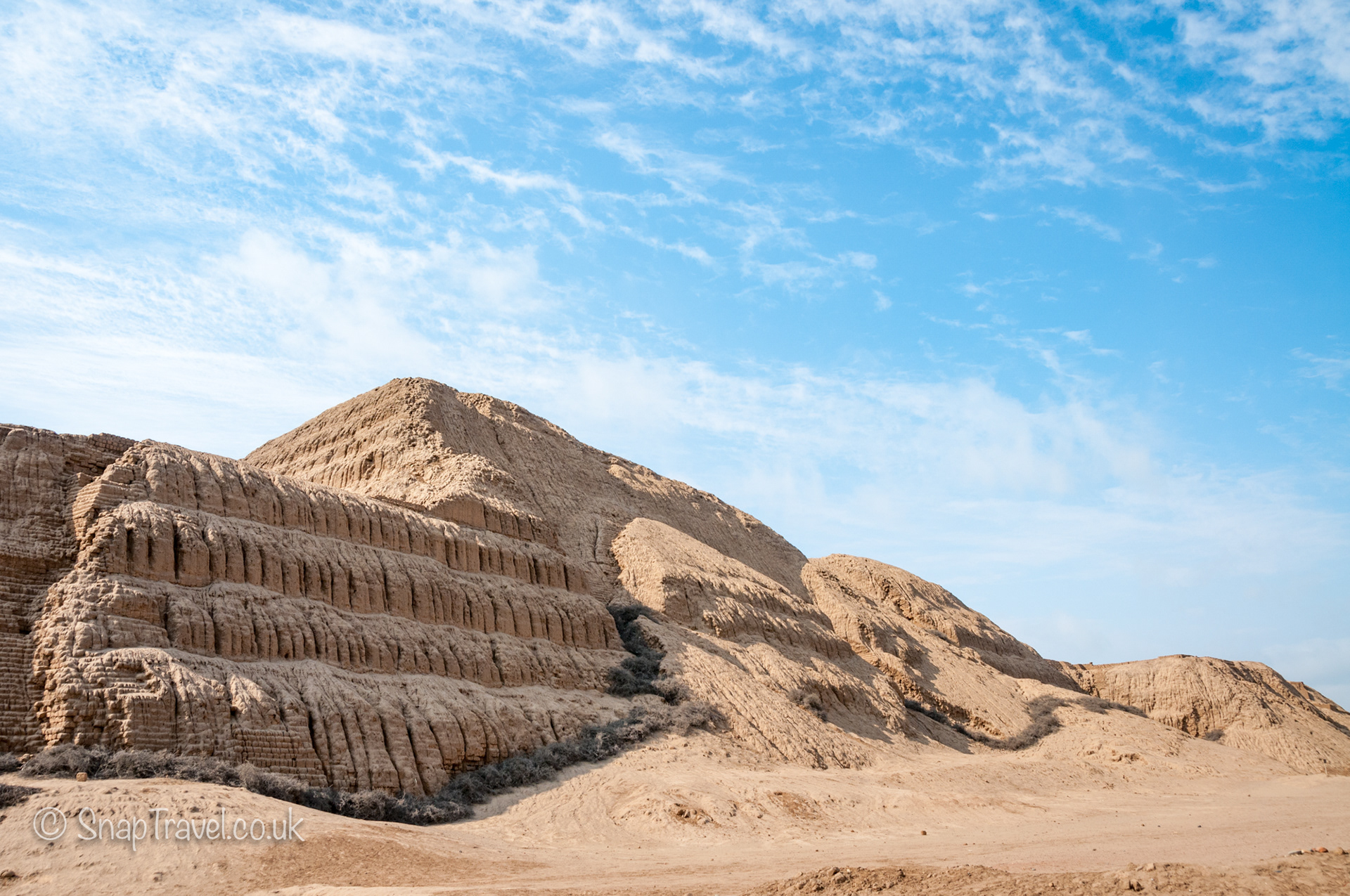 These two adobe temples were built by the Moche, or Mochica, culture that were prominent in Peru from around 200BC-600AD. This site is older than the nearby ruins of Chan Chan and was thought to be the capital of the Moche civilisation. Both these temples were of great administrative and ceremonial importance to the Moche. They were used for burials and even human sacrifices, with bodies being flung from the top of the temple. The temple of the sun, the larger of the two, is a pyramid-like structure, and when completed it was the largest pre-Hispanic building in the Americas.