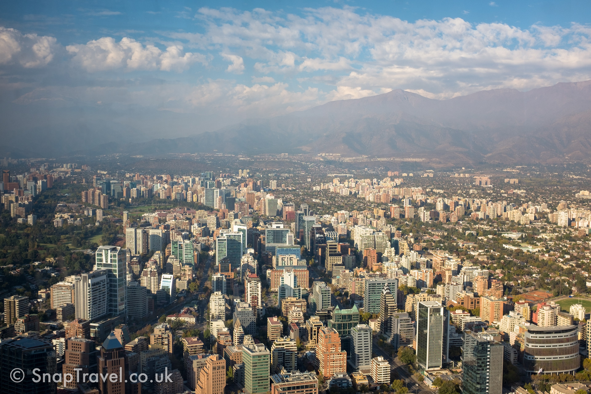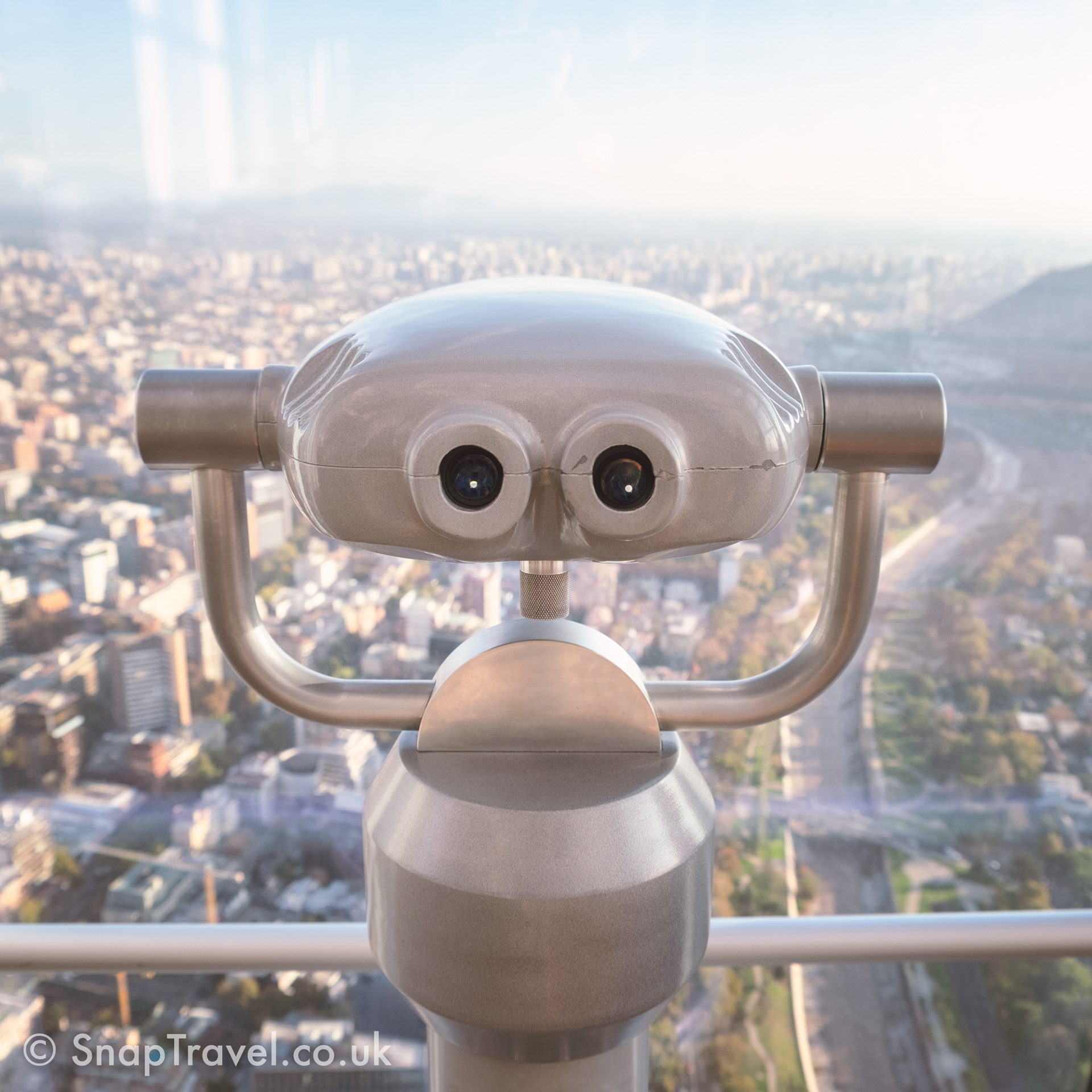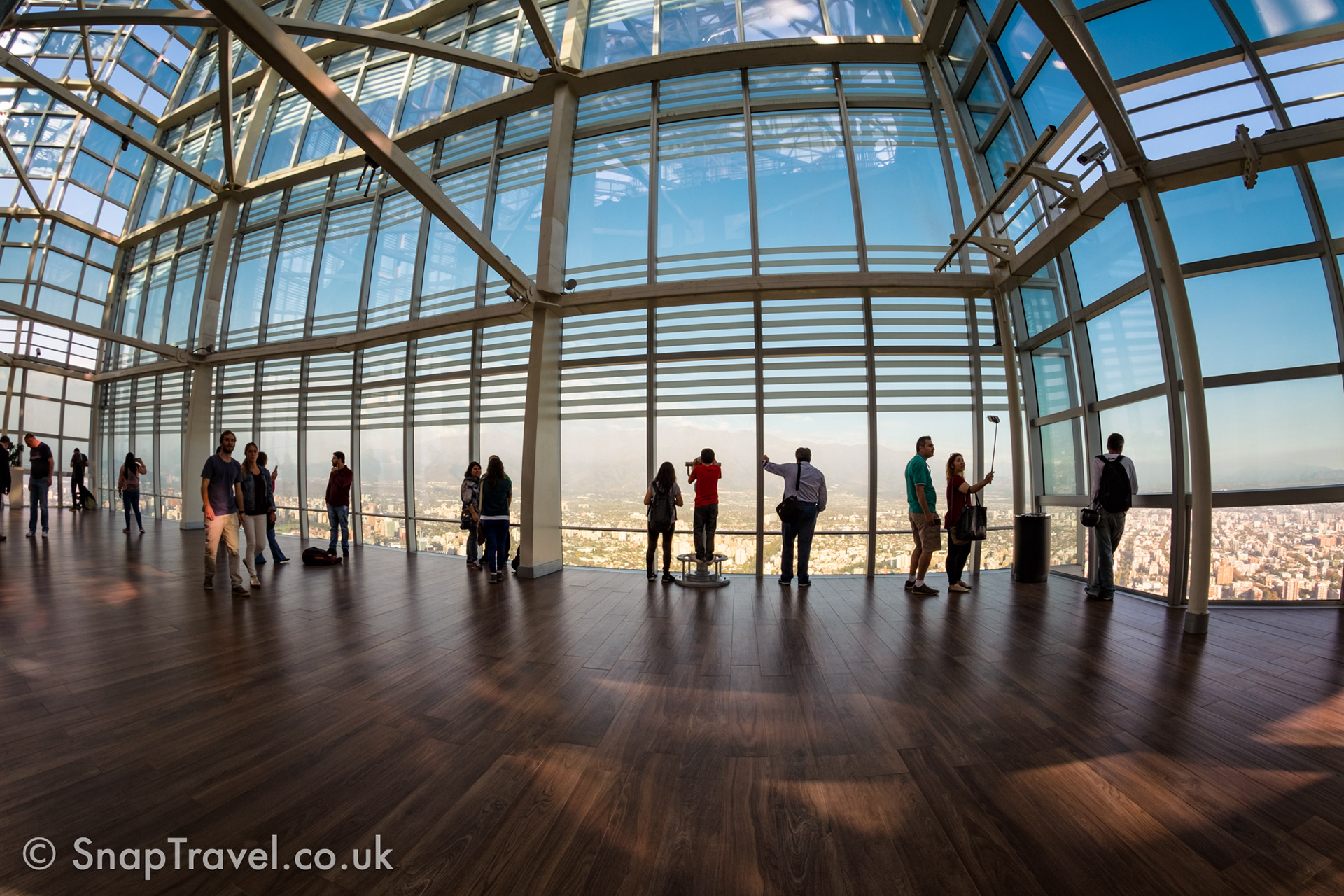 Last year I spent a long weekend in the Chilean capital, Santiago, home to the tallest building in Latin America. The sixty-four story Gran Torre Santiago dominates the city’s skyline. Standing at three hundred meters tall (nine hundred and eighty feet) it towers above every other building in the city. The Gran Torre is part of the Costanera Centre which also contains a vast shopping mall, two hotels, and an awful lot of office space. The building was completed in 2011 a year behind schedule, but it wasn’t until August 2015 that an observation deck, The Sky Costanera, opened to the public. Sitting on the sixty-first and sixty-second floors the Sky Costanera is accessible in just two minutes via a lightning-fast elevator. From these two observation floors, you get a beautiful three hundred and sixty-degree view of the city and its surrounding mountains.