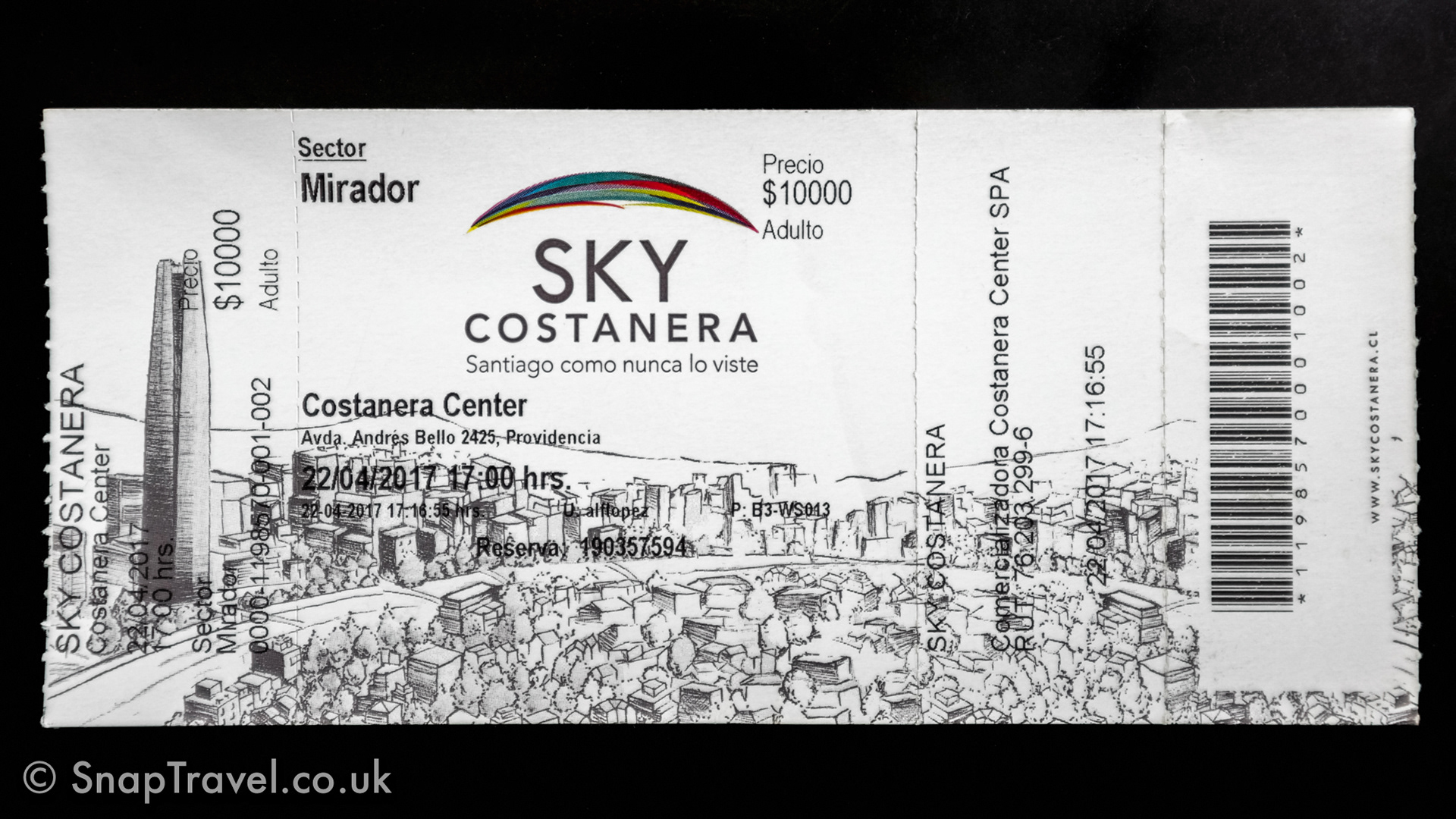 The entrance to the elevator is on the basement floor in the north corner of the shopping mall. The Sky Costanera is open every day from 10am to 10pm, last entry is 9pm, with tickets costing 15,000 Chilean Pesos for adults and 10,000 CLP for children, (kids under four years old can enter free of charge). We were lucky there was a promotion running when we visited, so we only paid 10,000 CLP. There's also a 'fast pass' available for 20,000 CLP, although we visited on a Saturday at 5pm and didn't have to queue at all.