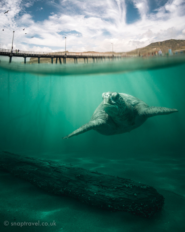 This is a composite image made up of three separate photos. In this video I’ll demonstrate how I blended the photos together using layers, masks, and blending modes, to create an underwater scene with a smiling sea turtle.